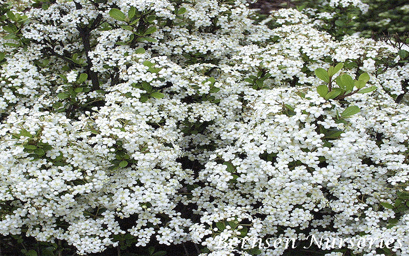 The tiny flowers are creamy white with five petals and arranged in flat topped cymes that are 2-3 inches across. Emerging in early spring along with the new shoots and leaves, they are mildly fragrant and very showy. The quarter inch fruits, maturing in late summer, are at first red, then ripen to black.