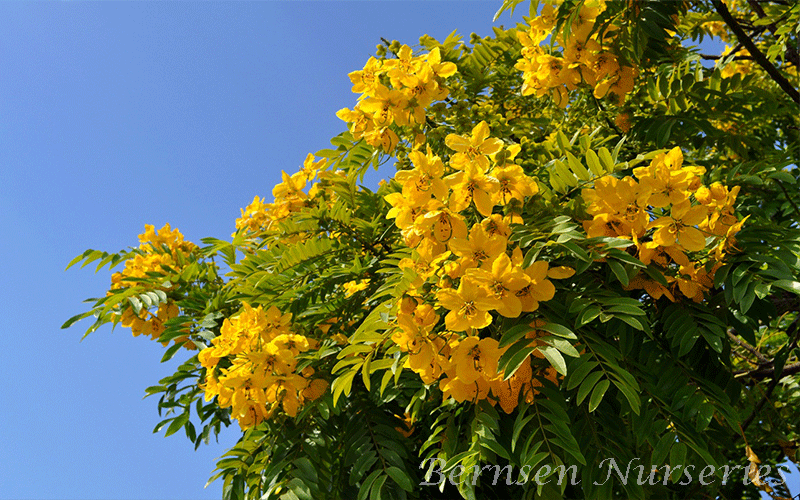 This large, spreading shrub or small tree makes a great container accent plant that looks fantastic on patios and near entryways. You can also use it as a specimen or lawn tree. Pruning cassia trees helps strengthen the structure and keeps it looking neat.