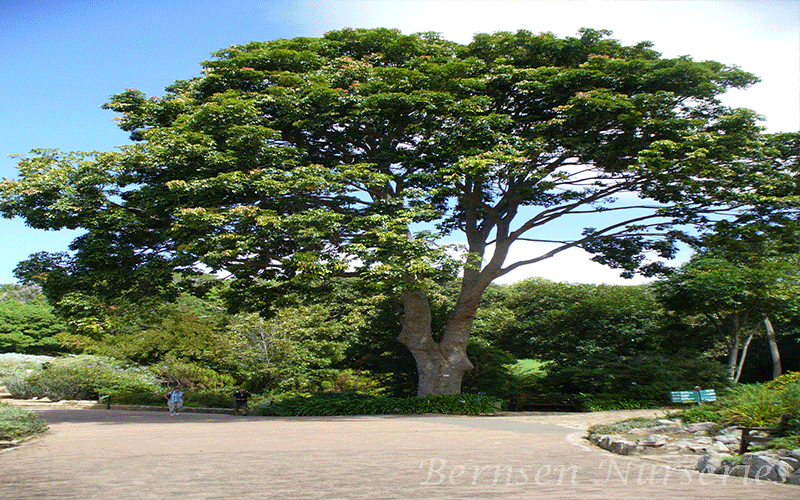 Plant Spacing: Because of its potential for developing a wide crown, place a mahogany at least 15 feet from the house. Come in from walks and drives at least 8 feet more if you can to avoid problems with the surface roots of a mature tree lifting paved areas.