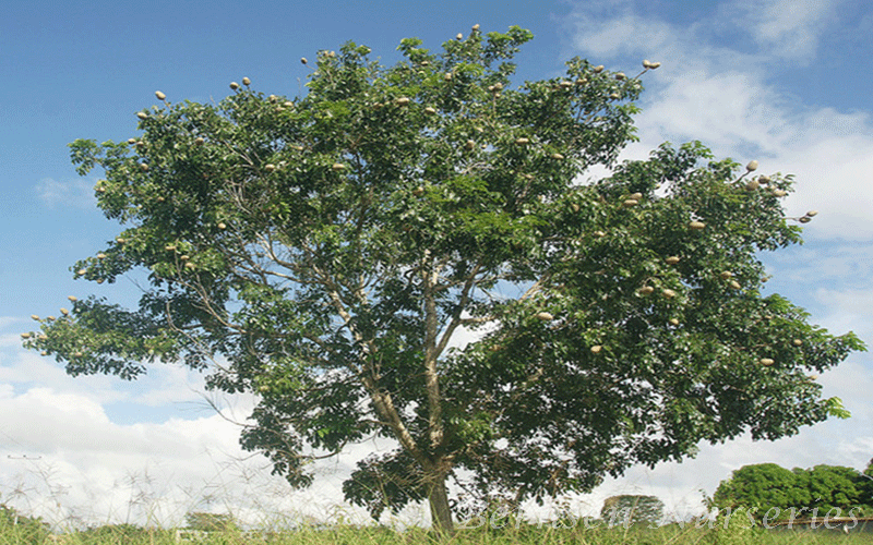The mahogany tree (Swietenia mahagoni) is a large tropical tree with a semievergreen growth habit. Mahogany trees produce broad, spreading growth with foliage that can span 50 feet in width and 75 feet in height at maturity.