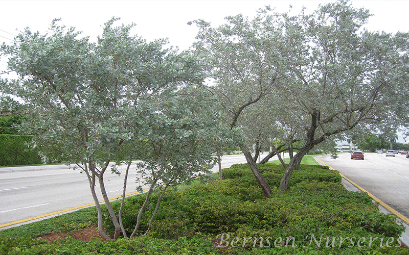 The Silver Buttonwood grows in a vase shape wider at the top and basically wants to be a tree, it's often somewhat bare at the bottom. You can encourage this and use the plant as a multi-trunk tree. Or if you prefer the look of a single trunk tree, buy one from the nursery already trained that way.
